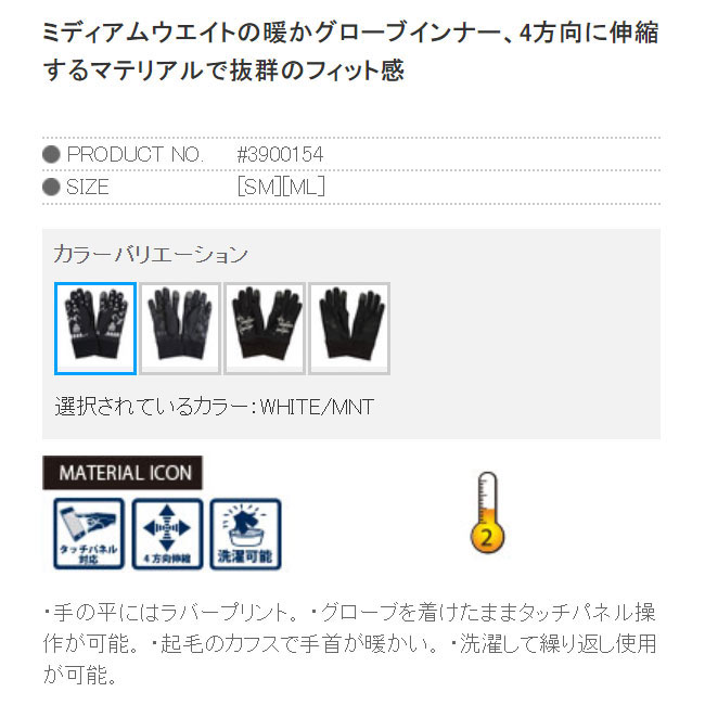 eb'sはこちらから >>> □商品詳細 ■MODEL:HEAT INNER ■小売希望価格:2,700円+税 -------------------------------- ○フィット感抜群のミディアムウエイトの暖かグローブインナー ・4方向に伸縮するマテリアルで抜群のフィット感。